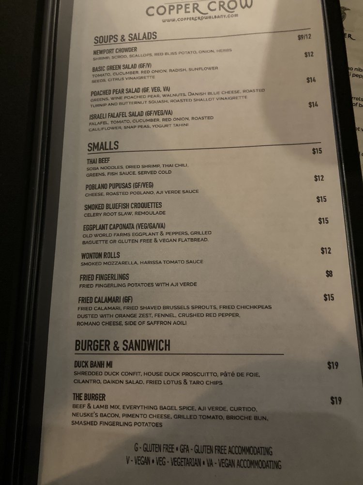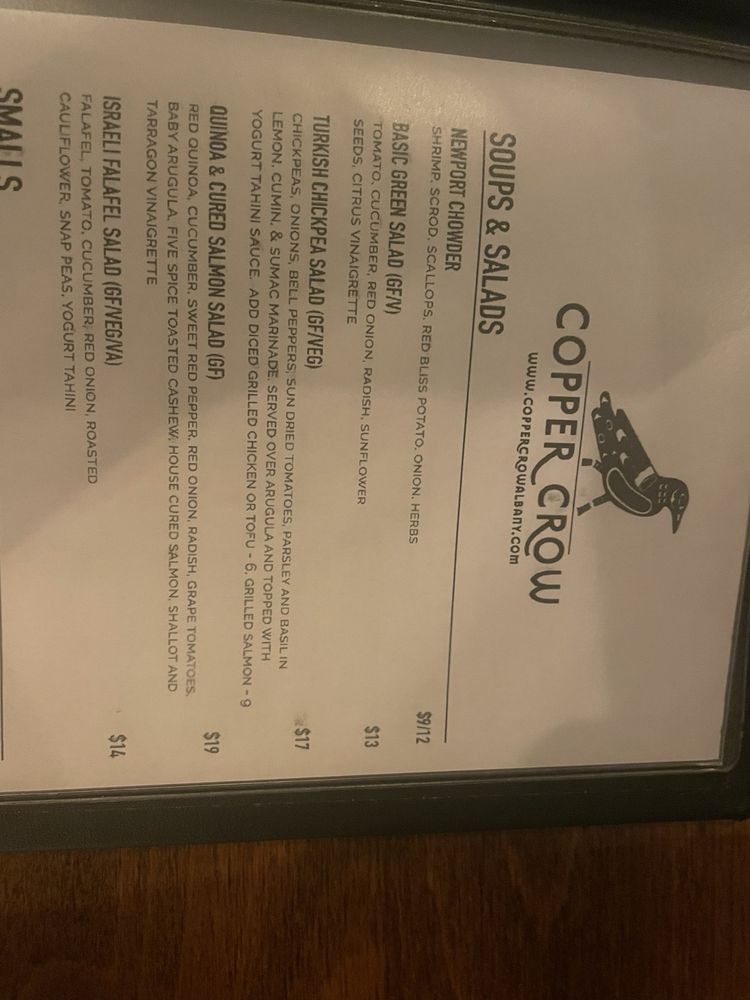 Introducing The Copper Crow, a trendy and upscale Cocktail Bar in Albany, NY. This New American gem offers a diverse menu with options for vegans and those with dietary restrictions. With a Full Bar and Happy Hour Specials, it's the perfect spot for a night out with friends or a special occasion.